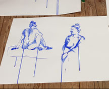 Figürliches Zeichnen mit dem Modell und malerische Umsetzung der Skizzen mit verschiedenen Techniken und Materialien.